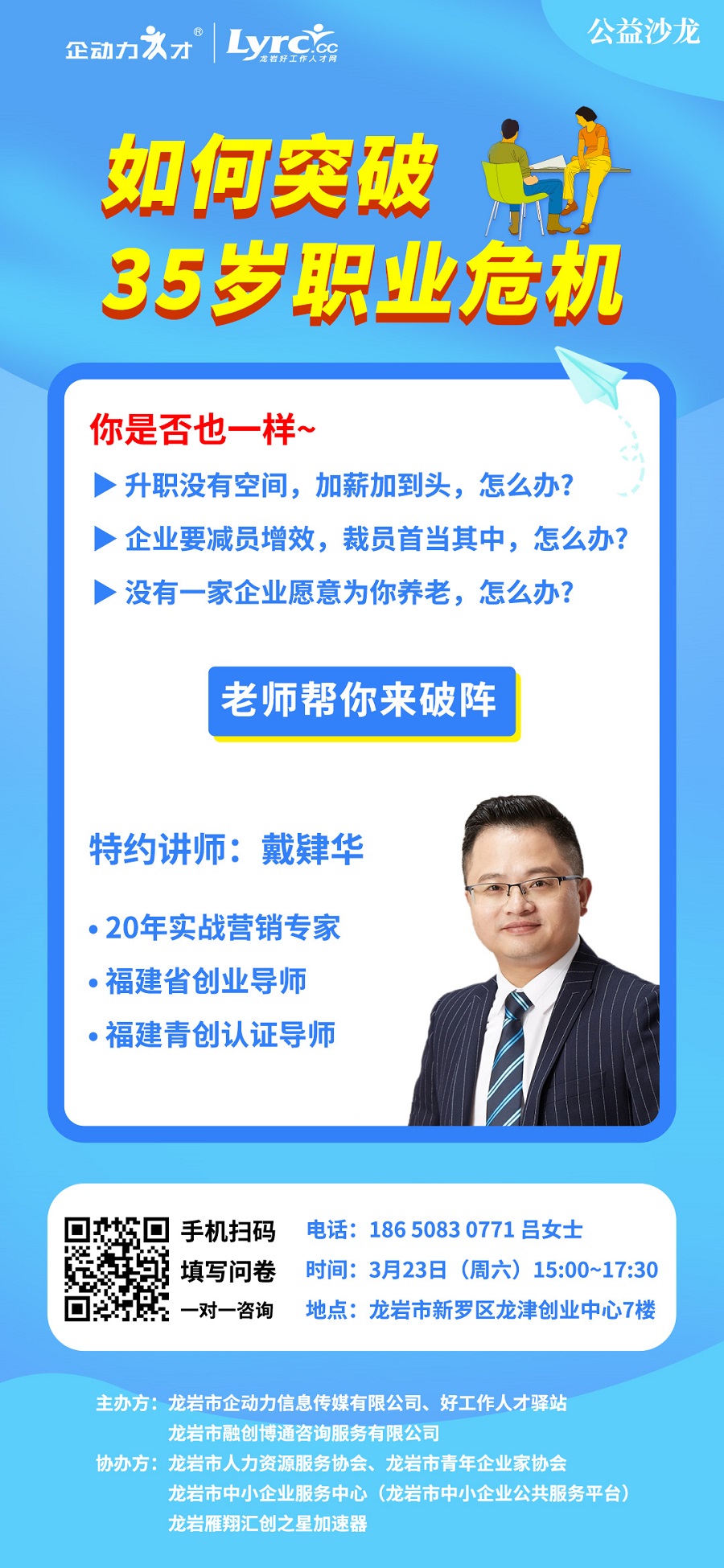 【3月23日公益沙龍】“如何突破35歲職業(yè)危機(jī)”開始報(bào)名啦!