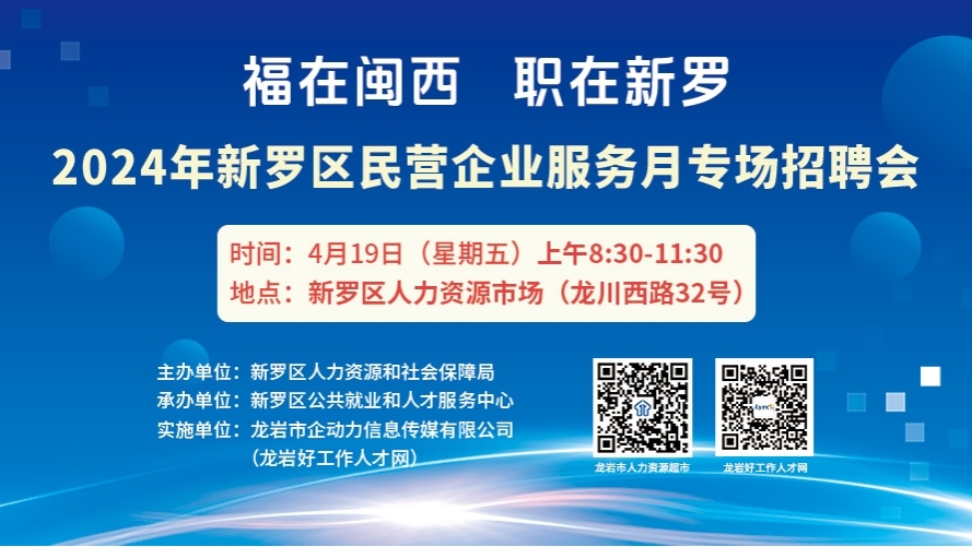 此次招聘會由新羅區(qū)人力資源和社會保障局主辦、新羅區(qū)公共就業(yè)和人才服務中心承辦,龍巖市企動力信息傳媒有限公司(龍巖好工作人才網(wǎng))實施,以“福在閩西 職在新羅”為主題,旨在幫扶畢業(yè)生、農(nóng)民工、就業(yè)困難人員、退役軍人等勞動者就業(yè)創(chuàng)業(yè),滿足企業(yè)和各類單位用工需求。