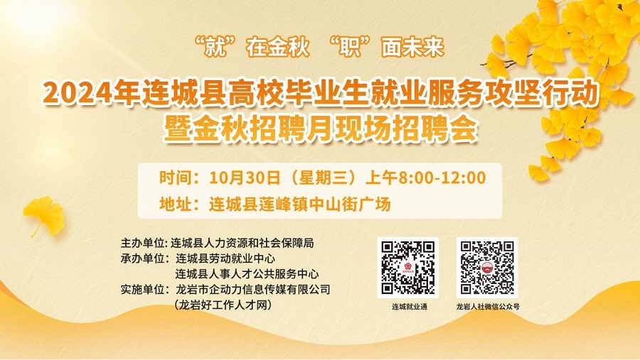 【10月30日】2024年連城縣高校畢業(yè)生就業(yè)服務攻堅行動暨金秋招聘月現(xiàn)場招聘會