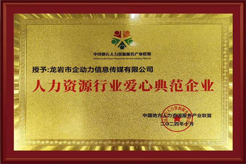 在峰會頒獎環(huán)節(jié),龍巖好工作人才網(wǎng)榮獲“人力資源行業(yè)愛心典范企業(yè)”,這一榮譽不僅體現(xiàn)了龍巖好工作人才網(wǎng)在行業(yè)內(nèi)的良好口碑和影響力,也彰顯了其作為愛心企業(yè)的社會責任感和擔當精神。