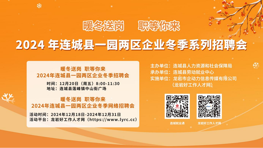 “暖冬送崗 職等你來(lái)”2024年連城縣一園兩區(qū)企業(yè)冬季網(wǎng)絡(luò)招聘會(huì) |