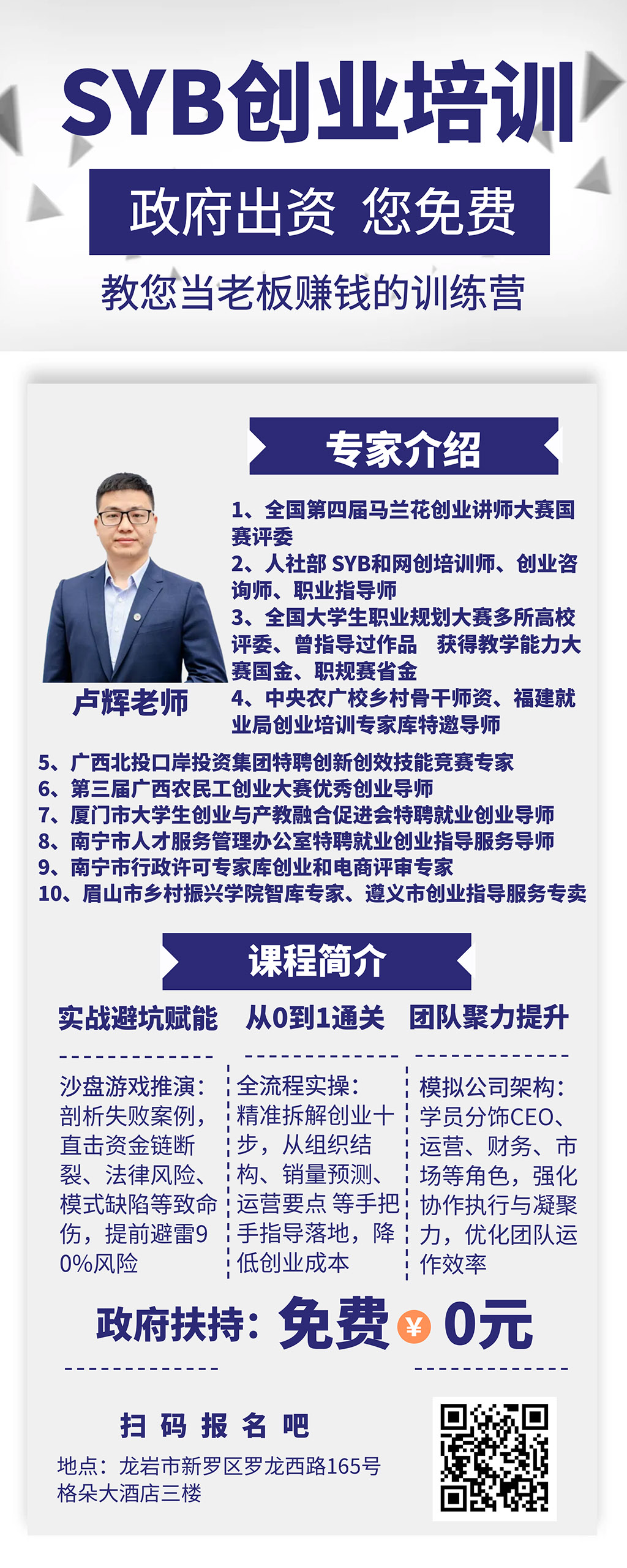 【1月16日開(kāi)班】龍巖創(chuàng)業(yè)培訓(xùn)1月16日開(kāi)班,政府出資,免費(fèi)學(xué)創(chuàng)業(yè)!名額有限!