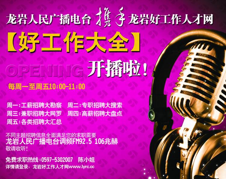 龍巖人民廣播電臺攜手龍巖好工作人才網(wǎng)lyrc.cc開辟《好工作大全》欄目